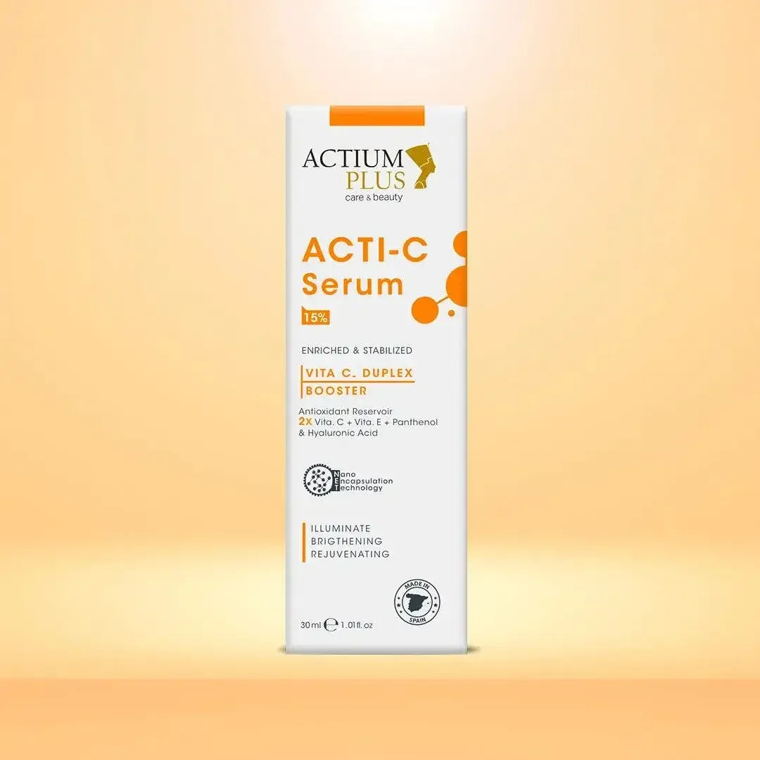 ACTI-C Serum is a skincare product that incorporates two highly stable forms of Vitamin C, namely Ascorbyl Glucoside and Sodium Ascorbate, to enhance its effectiveness. What sets Actium Plus apart is its use of Nano Encapsulation Technology, a cutting-edge formulation method designed to improve absorption without irritating the skin.